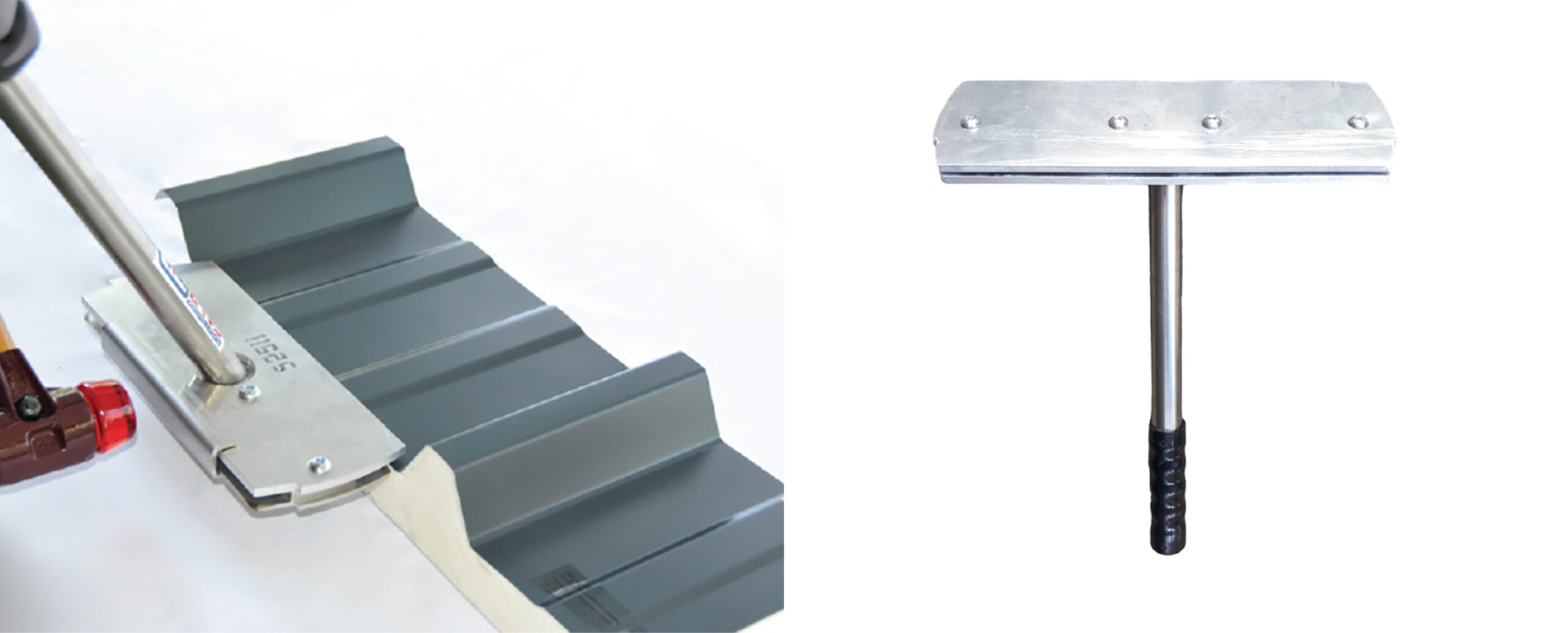 Like a well-made toastie, an insulated panel needs to be sealed to keep all the cheesy goodness inside. Did I say cheese? I meant insulation. The S-Bender Stop End Tool bends sandwich panels at the ridge and eaves for proper drainage and water ingress prevention. This durable but lightweight device can be used with different adapter heads, including the T-bender Stop End Tool, providing 360° water ingress protection. Both are designed by us in collaboration with our supplier.