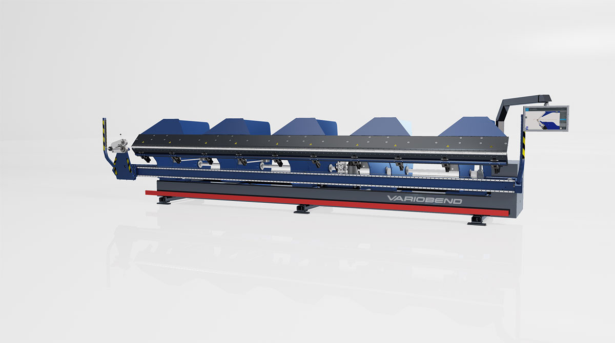Unique and unprecedented – a proven bending concept meets the latest Variobend e-drive technology. The new Variobend V 2.5 is 100% electric. Thanks to the new bending geometry with 300 degrees of free space, profiles with an aspect ratio of 1:2 can also be produced without any problems.
