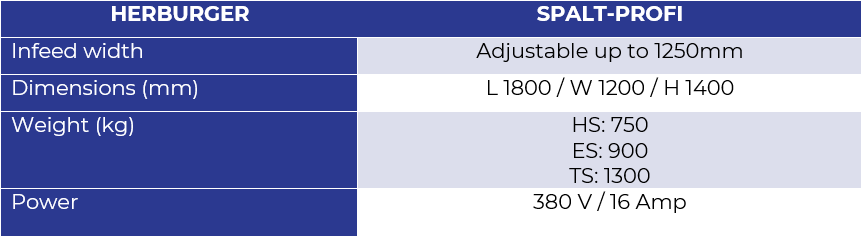 - Spalt-Profi TS Advantage: The TS model (“Business Model”) offers the highest level of customisation and automation potential, including professional features like an integrated Schroeder electric guillotine for cross-cuts and a wide array of options like levelling unit and reinforced shaft, making it ideal for high-volume, professional production environments requiring maximum efficiency and minimal manual input