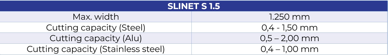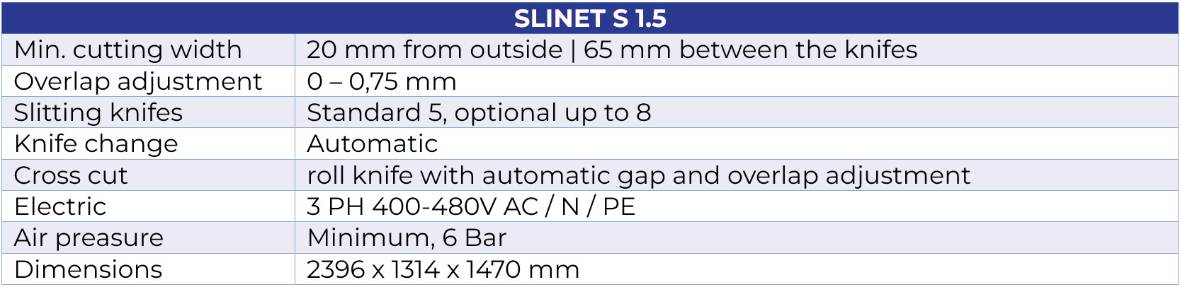 The cut to length unit SLINET S 1.5 allows precise cuttings with lowest set up time. With its full automated up to 8 knife setting the SLINET S 1.5 allows an automated adjustment for slitting.