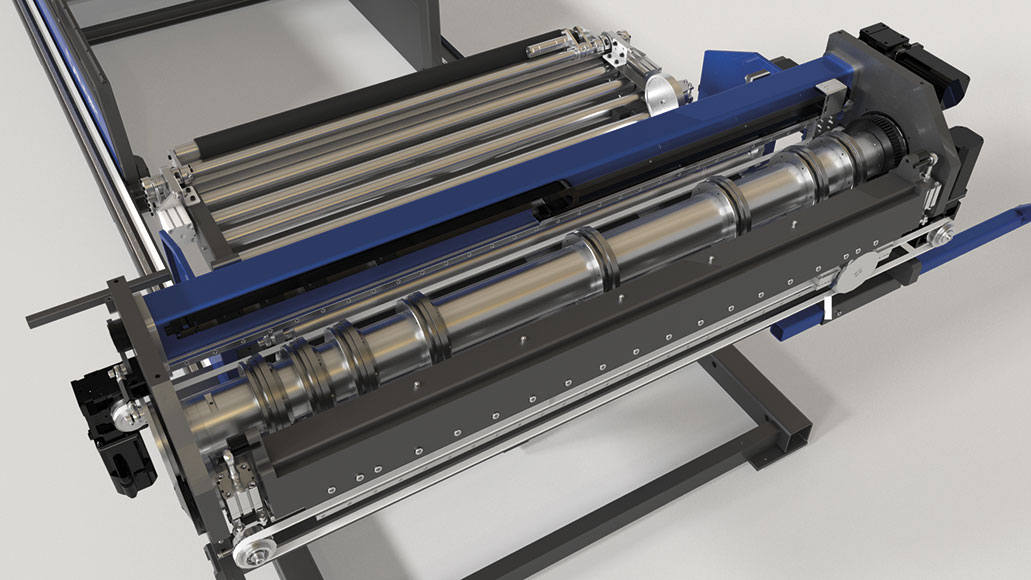The cross-cut is made by a roll knife. This cut will not be made from the top as usual. The innovation of SLINET allows for cross-cutting from the bottom up. This innovation eliminates scratches that occur during material handling as the small grade goes up, not down.