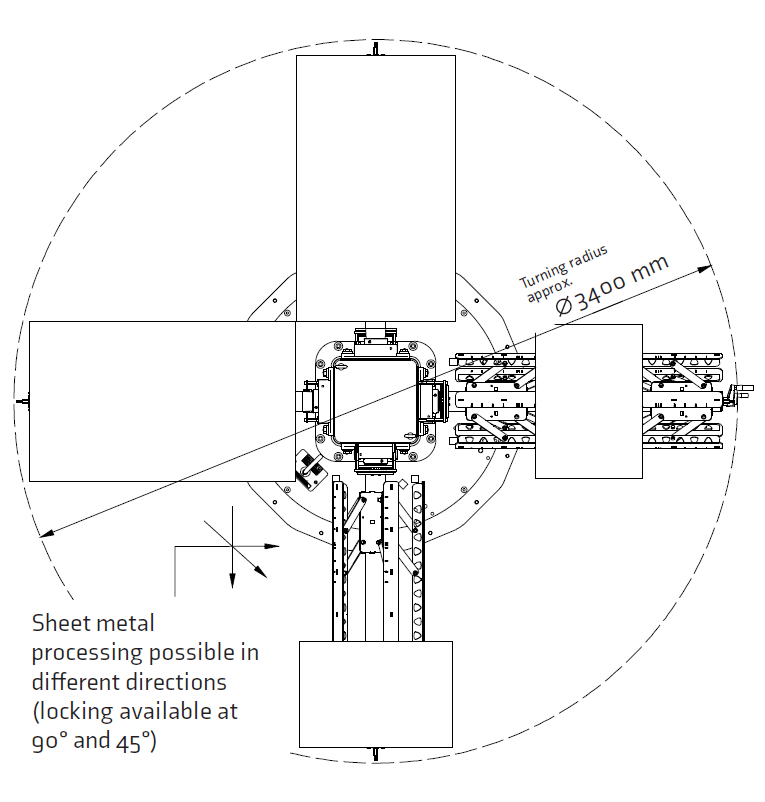 - 360° Multi-Machine Integration: Most storage systems are static. The Coiltwister XXL rotates and locks every 45°, allowing one central hub to feed multiple machines—such as a shear, a profiling machine, and a manual cutting station—simultaneously.