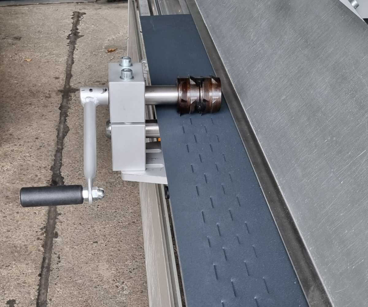 The 3.5-metre aluminium folding machine is fitted with the KNOLL cutting head for longitudinal cuts. Double ball bearings guarantee precise operation of the cutting head, producing clean, burr-free edges. The roller knives and bearings are maintenance-free. With its parking position on the sides of the folding machine, the cutting head is always close at hand and ready for use.