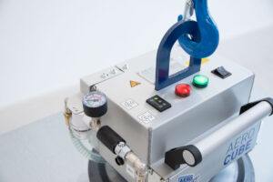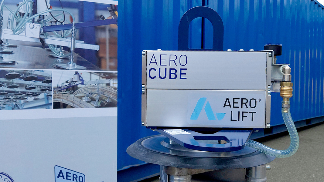 The Aero Cube is a compact, battery-powered vacuum lifter designed for the flexible and independent handling of a wide variety of materials, both horizontally and vertically. It is intended for use with an overhead crane or gantry indoors.
